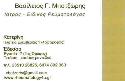 customer tabsΕπικοινωνίαΥπέρυχος ΜυοσκελετικούΤριχοειδοσκόπησηΘεραπεία με PRPΙατρείο: Εγνατία 17, ΈδεσσαΡευματολόγοιΥγείαΠλ. Ελευθερίας 1, Κατερίνη, ΠιερίαςΚΑΤΕΡΙΝΗ ΠΙΕΡΙΑΣΠΙΕΡΙΑΜΑΚΕΔΟΝΙΑ 2351026826 6974892363vbotzoris@gmail.com Το προτείνω (έχει προταθεί 0 φορές) ΦωτογραφίεςFacebook LikeShare on FacebookTweet Widget